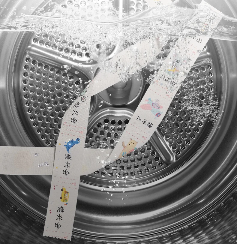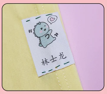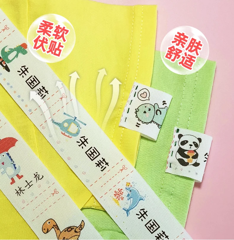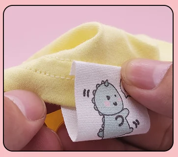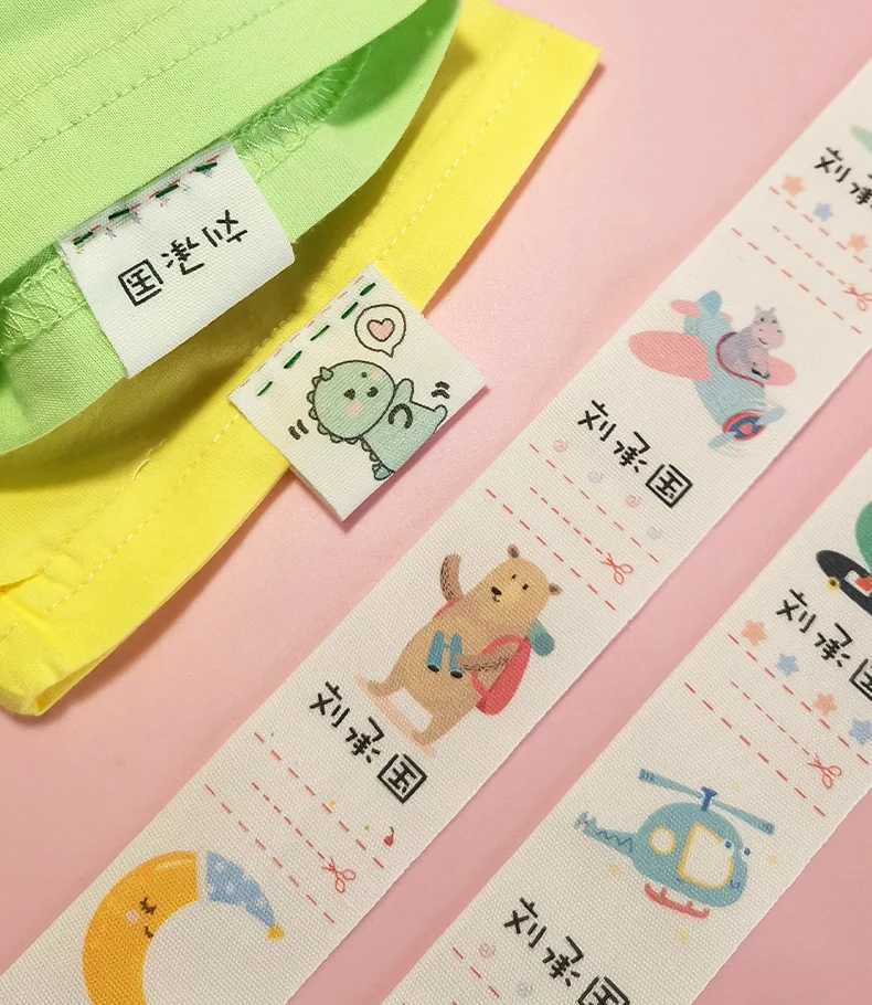 Hand-sewn cotton labels, soft and skin-friendly, with clear handwriting.